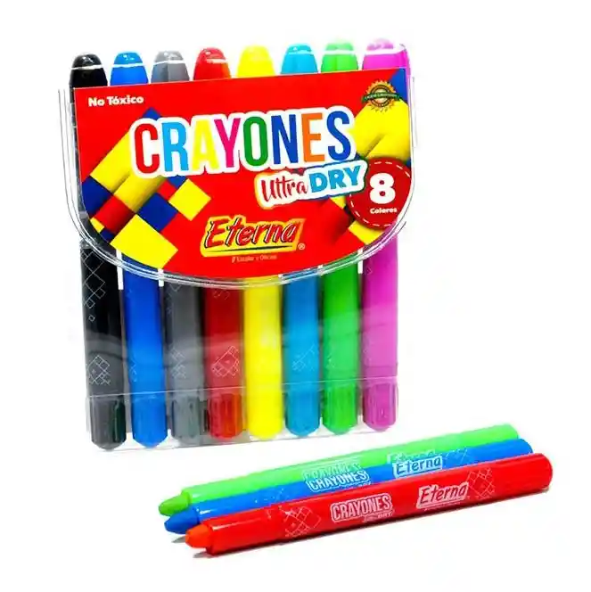 CRAYONES X8 UNIDADES, PERFECTOS PARA TRAZAR DIFERENTES FORMAS Y ESTILOS, ADEMAS SE PUEDE LIMPIAR FACILMENTE DE LA PIEL Y DELA MAYORIA DE ROPA. CARACTERISTICAS: 1 COLORES BRILLANTES 2 TINTA A BASE DE AGUA, FACIL DE LIMPIAR 3 PUNTA RESISTENTE 4 PARA USO DE NIÑOS MAYORES DE 3 AÑOS 5 NO TOXICO