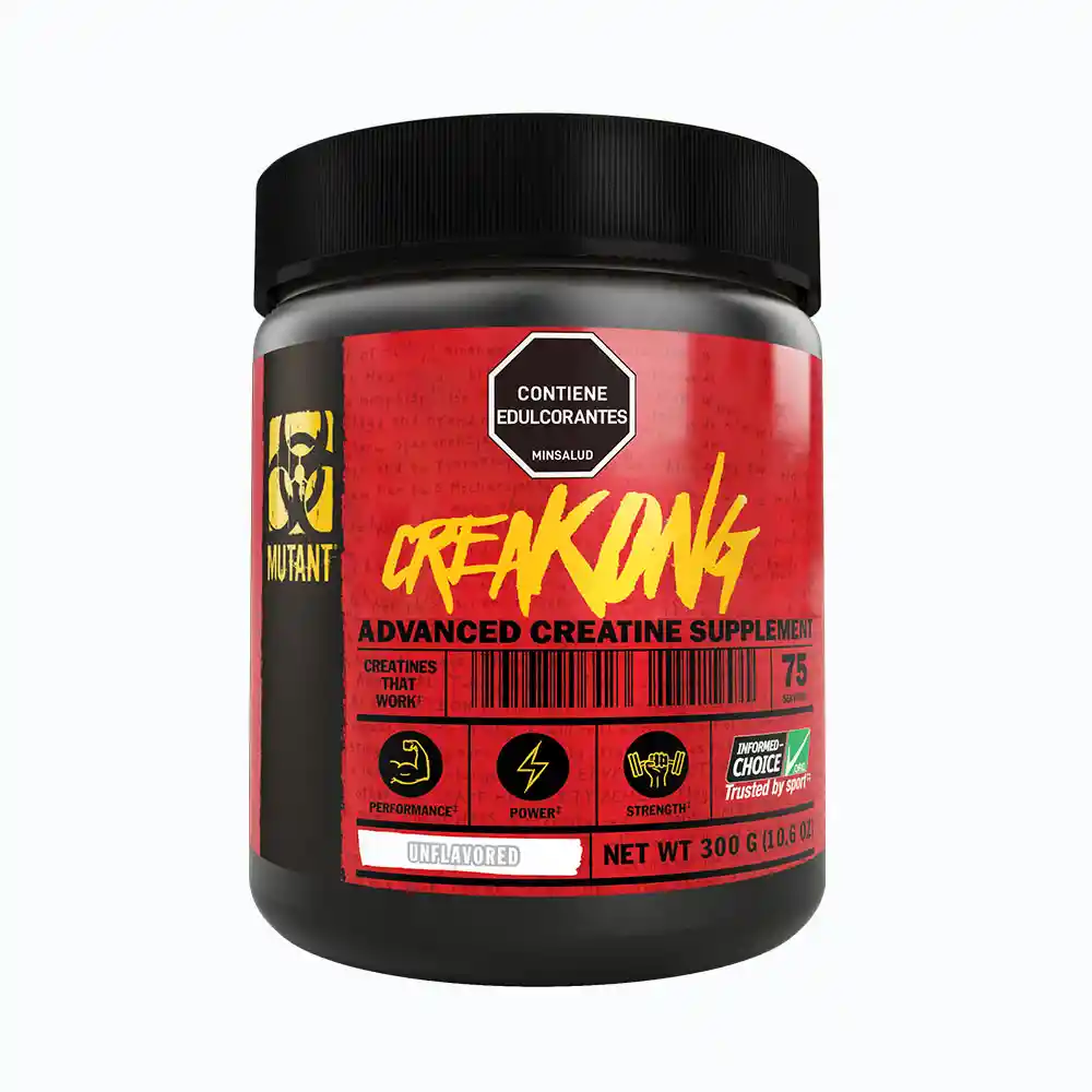 CREAKONG Fórmula de Creatina monohidratada Cada servicio contiene: 4g de monohidrato de creatina, quelato de creatina de magnesio y citrato de tri-creatina. Sin sabor. Ingredientes: Maltodextrina, creatina monohidratada, quelato de creatina de magnesio y citrato de tri-creatina. Fabricado por una planta que tambien procesa ingredientes a base de trigo, huevo, nueces, maní, pescado y mariscos. Modo de uso: Adultos, Disolver un servicio (1 cuchara medidora) en 240 ml de agua y agite hasta su disolución. Tamaño de la porción: 4g (75 Servicios aprox) Contenido: Neto 300g