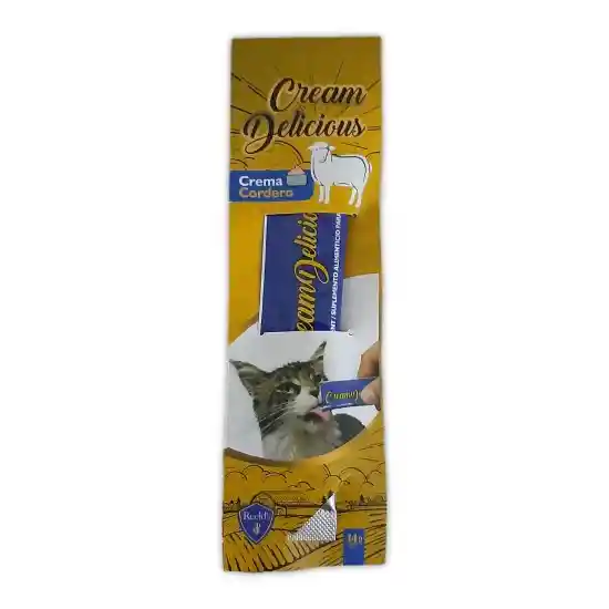 Deliciosa crema con sabor a cordero para gatos de todas las razas