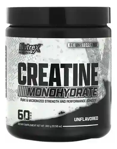 La Creatina Monohidratada de Nutrex Research en su presentación de 60 servicios es un suplemento de alta pureza diseñado para optimizar el rendimiento físico, la fuerza y la recuperación muscular. Cada envase de 300g proporciona porciones de 5 gramos de creatina micronizada, lo que facilita su disolución y absorción