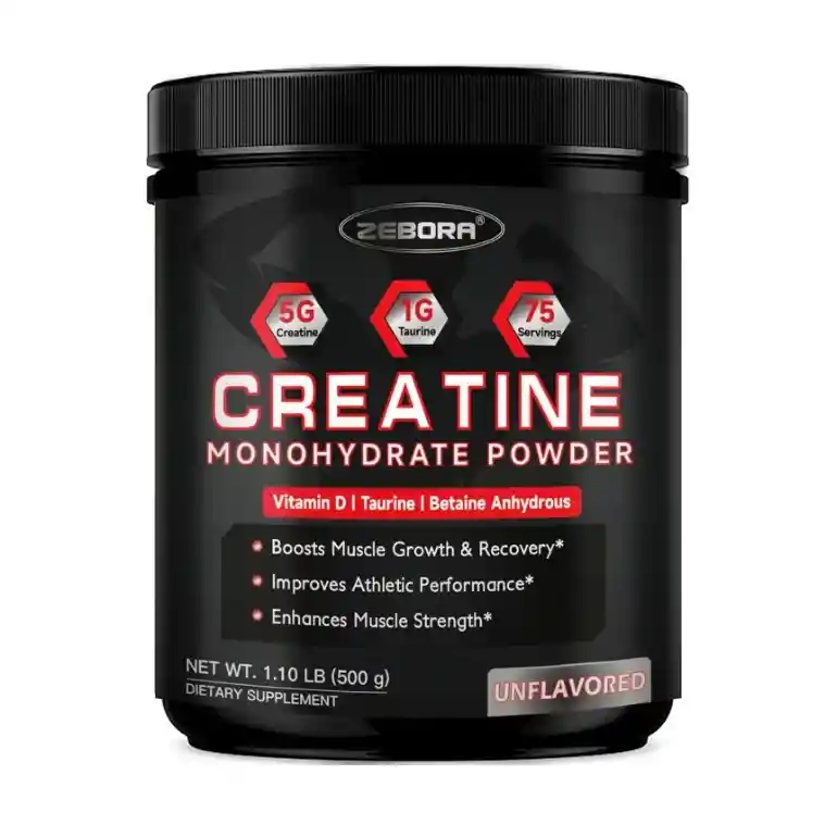 Creatina Monohidratada En Polvo - Fórmula de alta potencia: Cada porción proporciona 0.18 oz de monohidrato de creatina pura al 99.99%. Taurina+Betaína +Vitamina D+Creatina colaboran para ayudar a todas las células de su cuerpo a maximizar su energía, y de manera agradable y sin esfuerzo lograr resultados de entrenamiento! - La taurina + betaína anhidra ayuda a la rápida absorción de la energía de creatina en tu cuerpo. Creatina ayuda a lograr músculos magros y "libres de hinchazón", mejora el tamaño muscular, la fuerza y la masa de forma natural, y aumenta la capacidad de ejercicio de alta intensidad. - Alcanza el máximo rendimiento: el polvo de monohidrato de creatina ZEBORA ayuda al cuerpo a reponer ATP y reservas de energía y aumentar la resistencia muscular, elevar tus ganancias a nuevas alturas y promover la reparación muscular. - Apoya una larga vida útil: la falta de vitamina D puede conducir a la relajación muscular, por lo que la vitamina D añadida puede apoyar el tono muscular y reducir la relajación. Además, se ha demostrado que la creatina te ayuda a mejorar la función cerebral. - La creatina monohidratada sin sabor se disuelve rápidamente en cualquier bebida que te guste. Monohidrato de creatina micronizada con ingredientes naturales de vanguardia, es adecuado para todos los deportes, libre de gluten, soja, azúcar, conservantes y aditivos.