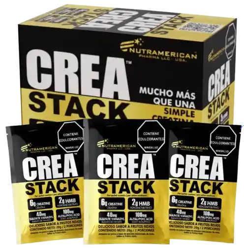 Crea Stack Sachet es la última generación de Creatina monohidrato. Su fórmula única en el mercado incluye HMB, así como ácido alfa lipoico y sulfato de vanadio en las cantidades óptimas, obteniendo una sinergia ideal para que alcances los objetivos planteados con mayor facilidad. Numerosas investigaciones han demostrado los beneficios de combinar creatina monohidratada con ácido alfa lipoico, el cual incrementa los efectos de la misma así como sus niveles en el cuerpo. La creatina monohidrato es la fuente más concentrada de creatina que existe en el mercado (88% de concentración) y es también la creatina con más estudios y mejores resultados obtenidos en ellos. El HMB contenido en Crea Stack (1g por porción), es el 100% de la dosis recomendada de HMB por ingesta y es otro de los ingredientes aprobados y con mayor cantidad de estudios sobre sus efectos en la masa muscular. Sabor a uvaDelicioso Sabor a frutos rojos Registro Invima NSA-0015613-2024. Contiene: 25 sachets. Creatina en polvo sachet. 6g Monohidrato de Creatina. 2g HMB (hidroximetilbutirato). 40mg sulfato de vanadio. 100 mg ácido alfa lipoico. Cero Azúcar. 20 Calorías.