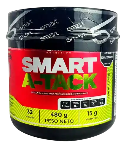 SUPLEMENTOS GYM MEDELLIN CREATINA SMART ATTACK DE SMART NUTRITION 32 SERVICIOS Descripción del producto Es una mezcla en polvo elaboraba a partir de fuentes de la más alta calidad y entre las que sobresale la Creatina HCL, pues gracias a su alto nivel de solubilidad y absorción no va a comprometer el pH de tu tracto gastrointestinal, lo que se traduce en que no vas a experimentar las molestias de otros productos a base de Creatina. Y es que Smart A- tack es un suplemento que además de multifuncional, al mezclarse con agua te va a dar un inigualable sabor a Mango Biche, ideal para consumir después de tus entrenos o actividades físicas de alta intensidad.