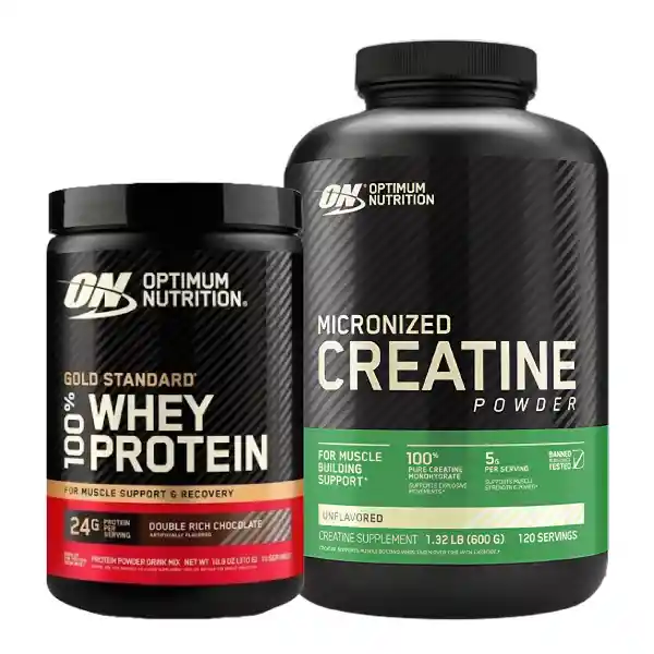 1 und de Creatine Micronized Optimum Nutrition 120 servicios + 1 und gratis de Gold Standard 100% Whey Chocolate 10 servicios