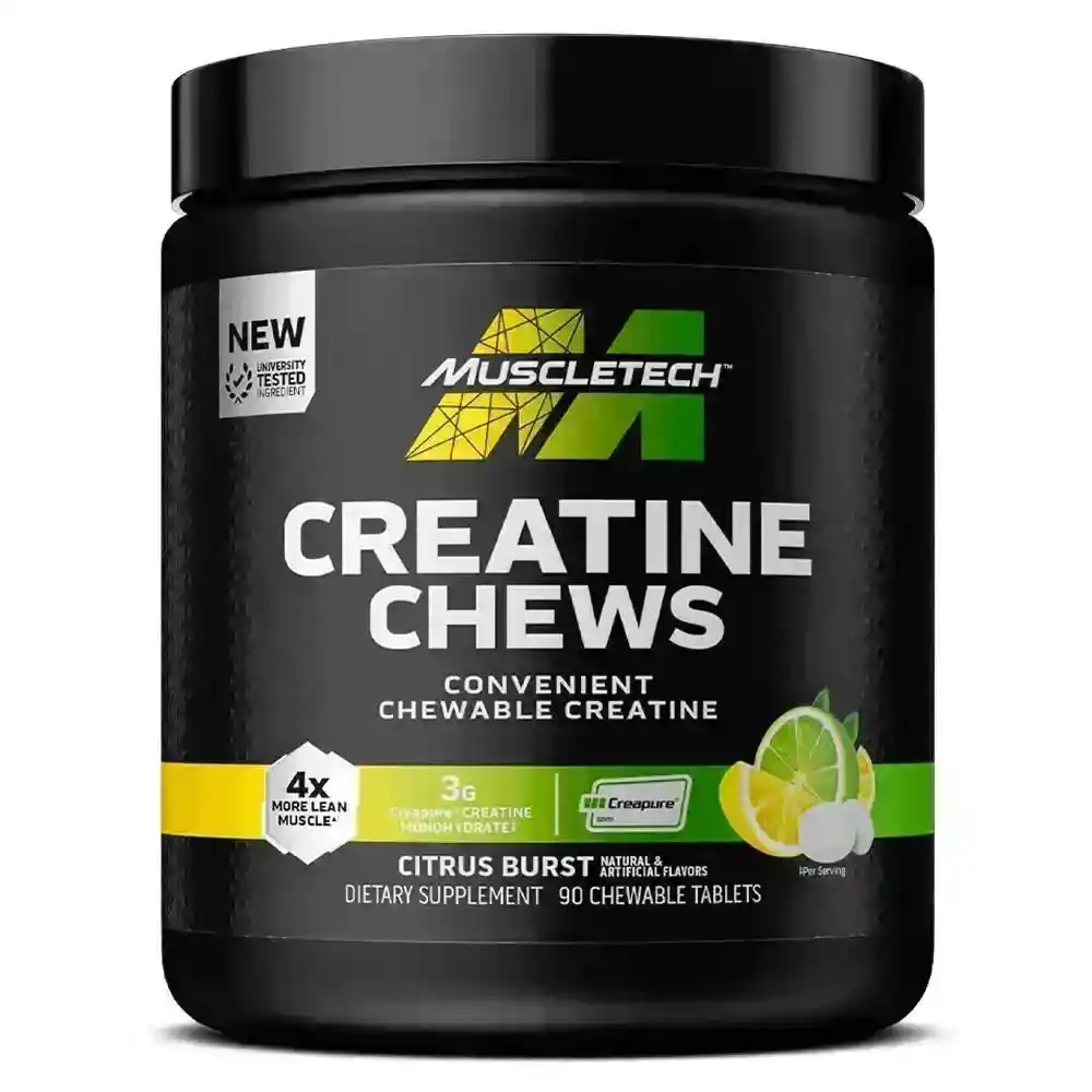 Creatine Chews Muscletech es la solución perfecta para quienes buscan maximizar su rendimiento físico sin complicaciones. Con esta creatina en formato masticable todo es mucho más sencillo y práctico. Cada tableta es una forma conveniente y deliciosa de obtener tu dosis diaria de creatina, ideal para quienes llevan un estilo de vida activo. Puedes llevar este producto con facilidad en todo momento. Formato: masticables Porción diaria: proporciona la dosis recomendada de creatina, 3 tabletas por servicio Presentación: 90 tabletas masticables (30 servicios en total)