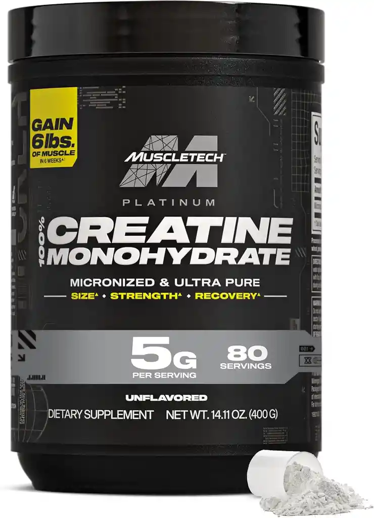 Polvo monohidrato de creatina – La creatina platino MuscleTech ofrece 0.18 oz de monohidrato de creatina micronizada 100% puro, probado por HPLC para aumentar el músculo magro, mejorar la fuerza y la resistencia muscular Constructor muscular para hombres y mujeres: la creatina platino ofrece creatina directamente a tus músculos, rendimiento de conducción. Los sujetos de prueba aumentaron su fuerza de prensa de banco en un increíble 18.6% en solo 10 días Recuperación muscular: la creatina ayuda a reponer los niveles ATP en los músculos trabajadores. Esto te permite entrenar más duro, durante más tiempo Ingrediente individual: sin rellenos. Sin azúcar. Sin sabor. Se adapta a una dieta cetogénica Suplementos de entrenamiento diario: durante los primeros 3 días (fase de carga): mezcla 1 cucharada con 8 onzas de agua (u otra bebida) y consume 4 veces al día. Después del día 3 (fase de mantenimiento): mezcla 1 cucharada con 8 onzas de agua (u otra bebida) y consume de 1 a 2 veces al día-