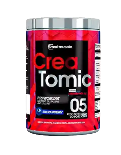 SUPLEMENTOS GYM MEDELLIN CREATOMIC SMARTMUSCLE 30 SERVICIOS Crea Tomic y su potente fórmula con 5g de Creatina HCL, 3g de Leucina y 3g de Glutamina te permitirán pasar al siguiente nivel de la construcción muscular. La sinergia de estos 3 componentes es la mezcla perfecta para potenciar la síntesis proteica que te permite construir músculo con mayor eficiencia, mejora la absorción de los aminoácidos en el organismo, siendo así mayor la biodisponibilidad y los beneficios, repara rápidamente los tejidos dañados y provee al músculo con mayores fuentes energéticas que hacen retrasar la fatiga muscular durante los entrenamientos de alta o larga intensidad. La Creatina HCL tiene mejor biodisponibilidad dentro de nuestro organismo, lo que garantiza una mejor absorción y mejores resultados. Los aminoácidos que conforman la creatina son Arginina, Metionina y Glicina y son perfectos para la construcción y reducción de la fatiga muscular, tener mejor rendimiento deportivo y aumentar la eficiencia en la reparación del músculo. La Leucina es un aminoácido vital en el proceso de señalización para el crecimiento muscular, sin este aminoácido nuestro cuerpo no sería capaz de construir músculo sin importar que tan fuerte entrenes o que tan bien comas. La Glutamina es perfecta para aumentar la reparación de tejidos, por lo tanto, la sensación de cansancio al día siguiente se verá drásticamente reducida, lo que te brindará una mejor motivación para entrenar y sacar lo mejor de tí cada día en cada entreno. La creatina te ayudara para mejorar tu capacidad física en deportes de fuerza, potencia, resistencia anaeróbica; con la capacidad de recuperarte muy bien entre serie y serie. La suplementación con creatina no sólo es segura, también posiblemente beneficiosa con respecto a la prevención y recuperación de lesiones deportivas, concepto publicado y verificado por diferentes estudios.