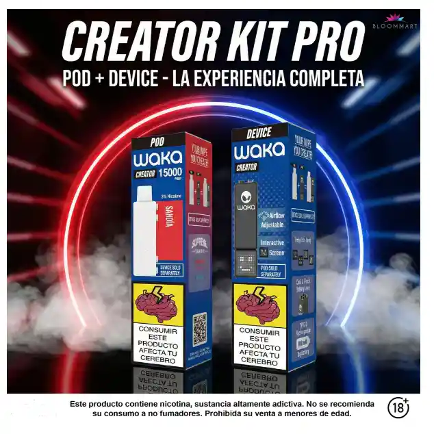 Este producto contiene nicotina sustancia altamente adictiva y nociva para la salud. Su consumo es solo para mayores de edad. 1 dispositivo Waka Creatot Pod Modelo P31, INGREDIENTES: Glicerina, propilenglicol, saborizante, nicotina, y acido benzoico Caracteristicas: Esencia - Waka Creator Capsula SANDIA 1500puff 3% nicotina - 15000puff (incluye batería)