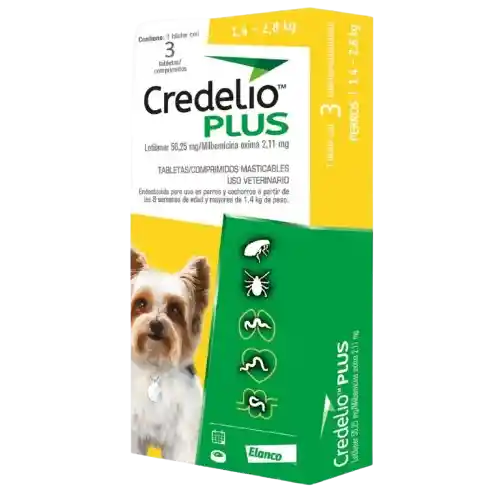 Credelio Plus es un desparasitante interno y externo avanzado diseñado para ofrecer una protección completa y confiable a los perros contra los principales parásitos que afectan su salud. Su fórmula combina dos potentes principios activos: lotilaner y milbemicina oxima, que actúan conjuntamente para eliminar pulgas, garrapatas, ácaros, lombrices intestinales, anquilostomas y previenen el gusano del corazón. Con una sola tableta masticable mensual, Credelio Plus brinda un control integral, manteniendo a tu mascota libre de parásitos internos y externos durante 30 días. Fabricado por Elanco, líder en soluciones veterinarias, este antiparasitario destaca por su eficacia, seguridad y excelente palatabilidad, facilitando su administración incluso en perros exigentes. Es ideal para tutores que buscan un producto todo en uno, que combine protección, comodidad y respaldo científico. Credelio Plus no solo elimina las infestaciones existentes, sino que previene futuras reinfecciones, ayudando a mantener la salud general, energía y bienestar de tu perro.