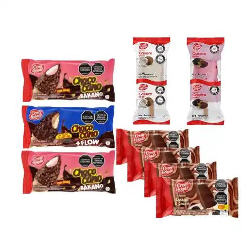 2 Chococono Bkno+ 1 Chococono Flow + 2 Casero (Coco y Mora) + 4 Paletas de Brownies and Cookies cubierta de Chocolate.