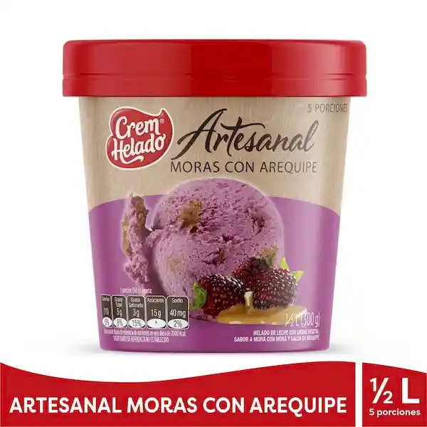 Helado medio litro de mora con trozos de mora y salsa de arequipe