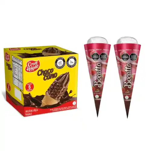 Pack de Chococono x 6 unidades mas 2 Cono Bocatto sabor (Vainilla Fresa) .
