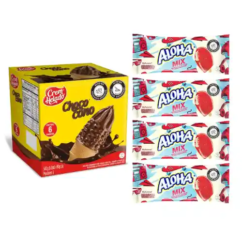 Pack de Chococono x 6 unidades mas 4 Aloha Mix (Paleta de agua sabor a Kola rellana de leche condensada)