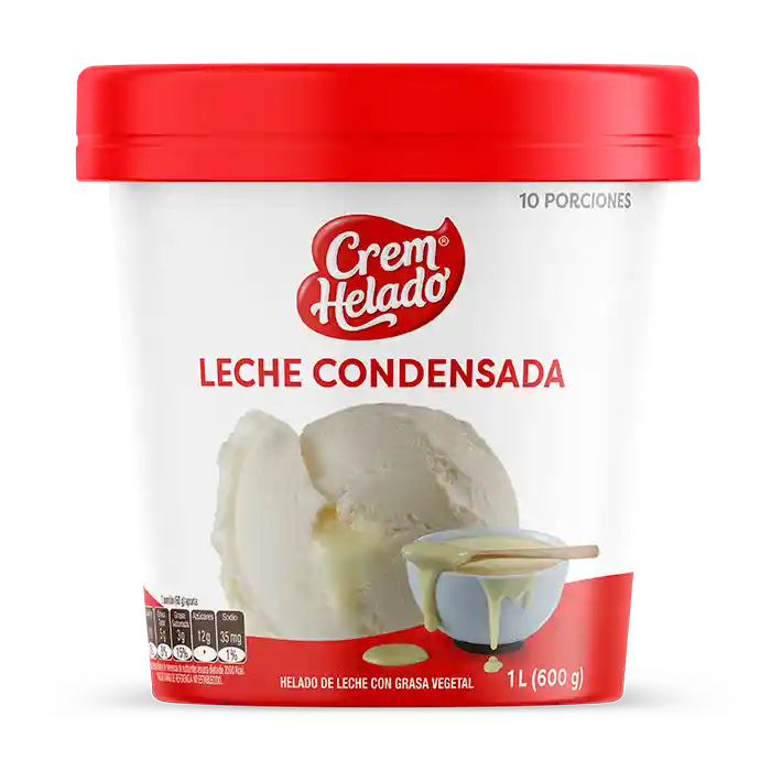 Helado de leche con grasa vegetal, sabor a leche condensada.