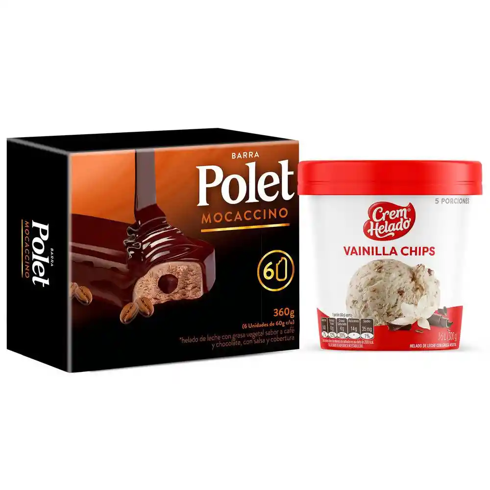 Polet Mocaccino Caja 360 g 6 Und + Crem Helado Helado Vainila Pote 500 mL