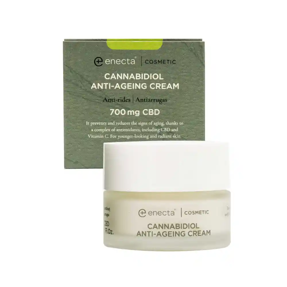 La Crema Antiarrugas Enecta con 700 mg de CBD x 50 ml es un tratamiento facial avanzado formulado para combatir los signos del envejecimiento y mejorar la elasticidad de la piel. Enriquecida con cannabidiol (CBD) de alta calidad, ácido hialurónico y extractos naturales, esta crema hidrata profundamente, ayuda a reducir la apariencia de líneas de expresión y arrugas, y promueve una piel más firme, luminosa y rejuvenecida. Su textura ligera y de rápida absorción la hace ideal para todo tipo de piel, incluso las más sensibles.