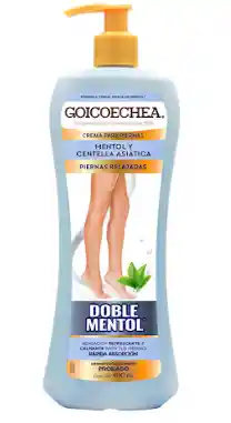 Goicoechea Doble Mentol ofrece una sensación refrescante y calmante para tus piernas. Más livianas, suaves y descansadas después de la aplicación. Para que sirve: Siente tus piernas más livianas, suaves y descansadas después de la aplicación. su fórmula con doble mentol y centella asiática está dermatológicamente probada. resultados comprobados.