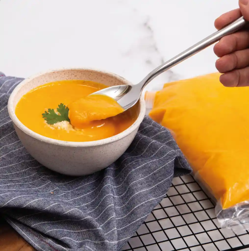 Crema de ahuyama x900gr para calentar y servir en casa.