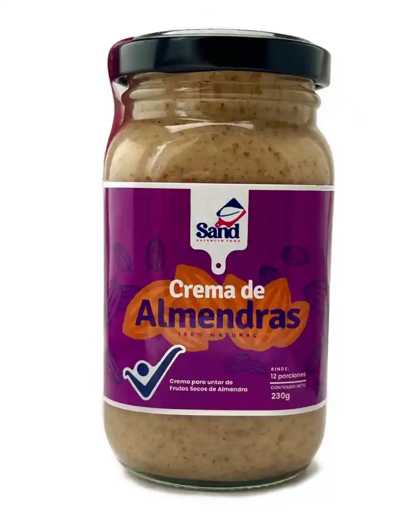 Disfruta de una crema De Almendras Sand 230g. Es la elección perfecta para quienes buscan un sabor auténtico y una textura suave y cremosa. Elaborada con almendras de alta calidad, esta crema es ideal para untar en tostadas, añadir a batidos o disfrutar directamente de la cuchara. Su envase en frasco permite una fácil dosificación y conservación, manteniendo la frescura y el sabor en cada uso. Beneficios: - No contiene azúcar - Naturales sin aditivos - Fuente de proteína -Para todas las edades -Aporta energía Beneficios adicionales Modo de uso: Puedes usarlo como esparcible en una tostada, puedes acompañarlo con frutas como el banano, la manzana, los arandanos, las fresas. Tambien puedes agragar a tu cereal favorito un poco de crema para dar un mejor sabor y tener un mejor alimento. Puedes hacer un delicioso sandwich de crema en cualquiera de sus sabores. Puedes enviarlo en la lochera del colegio o usarlo como snack en el trabajo. Otros modos de uso: Batidos Energéticos: Agrega una cucharada a tus batidos de la mañana para un extra de proteína y energía sostenida. Combina bien con leche (vegetal o animal), avena y frutas. Aderezo para Frutas: Úsala como un dip cremoso para rodajas de manzana o pera, espolvoreando un poco de canela para un toque extra. Este producto es ideal para personas que buscan una alternativa saludable a las cremas tradicionales. Rica en proteínas y grasas saludables, la Crema De Almendra Sand es perfecta para quienes llevan un estilo de vida activo y desean incorporar nutrientes esenciales en su dieta. Además, su sabor natural y delicioso la convierte en un complemento versátil para diversas recetas. La línea Sand Almendras se destaca por su compromiso con la calidad y el sabor, ofreciendo un producto que no solo satisface el paladar, sino que también aporta beneficios nutricionales. Disfruta de la Crema De Almendras Sand y transforma tus comidas y meriendas en momentos de placer saludable. ALMENDRA Mantequilla de almendras, Crema de almendras, Crema de nuez, Sin azúcar, Sin conservantes, Vegano, Natural, Orgánico, Keto, Bajo en carbohidratos, Proteína vegetal, Snack saludable, Colaciones saludables, Untable natural, Sin gluten, Sin aditivos Beneficios Alta en proteína, Fuente de energía, Rica en grasas buenas, Ideal para desayuno, Perfecta para postres, Merienda saludable, Para deportistas, Apto para veganos, Dulce sin azúcar, Ideal para niños, Apto para diabéticos, Sin aceite de palma, Nutrición consciente, Healthy food, Real food, Alimentación saludable, Fit, Runners, Entreno, Entrenamiento, Ciclistas, Alto rendimiento Tu compra Compra online, Entrega a domicilio, Pago seguro, Compra saludable, Calidad premium, Hecho con amor, Sabor auténtico, Tienda saludable, Producto local