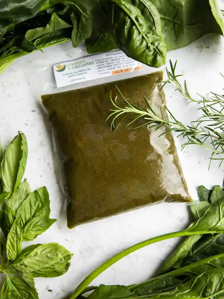 Crema de Espinacas 100% Natural. Empacada y congelada, lista para calentar y consumir en minutos. Empaque x 350ml. NO harinas NO preservantes NO lacteos NO saborizantes