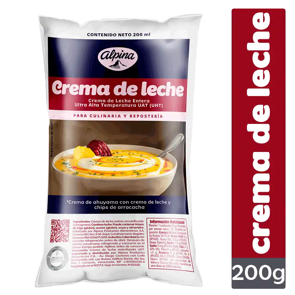 La crema de leche es un producto lácteo elaborado a partir de la grasa de la leche. Es un alimento de consistencia suave, cremosa y de color blanco que puede ser utilizado en diferentes preparaciones culinarias. Para mantener el producto fresco, consérvese refrigerado una vez abierto.