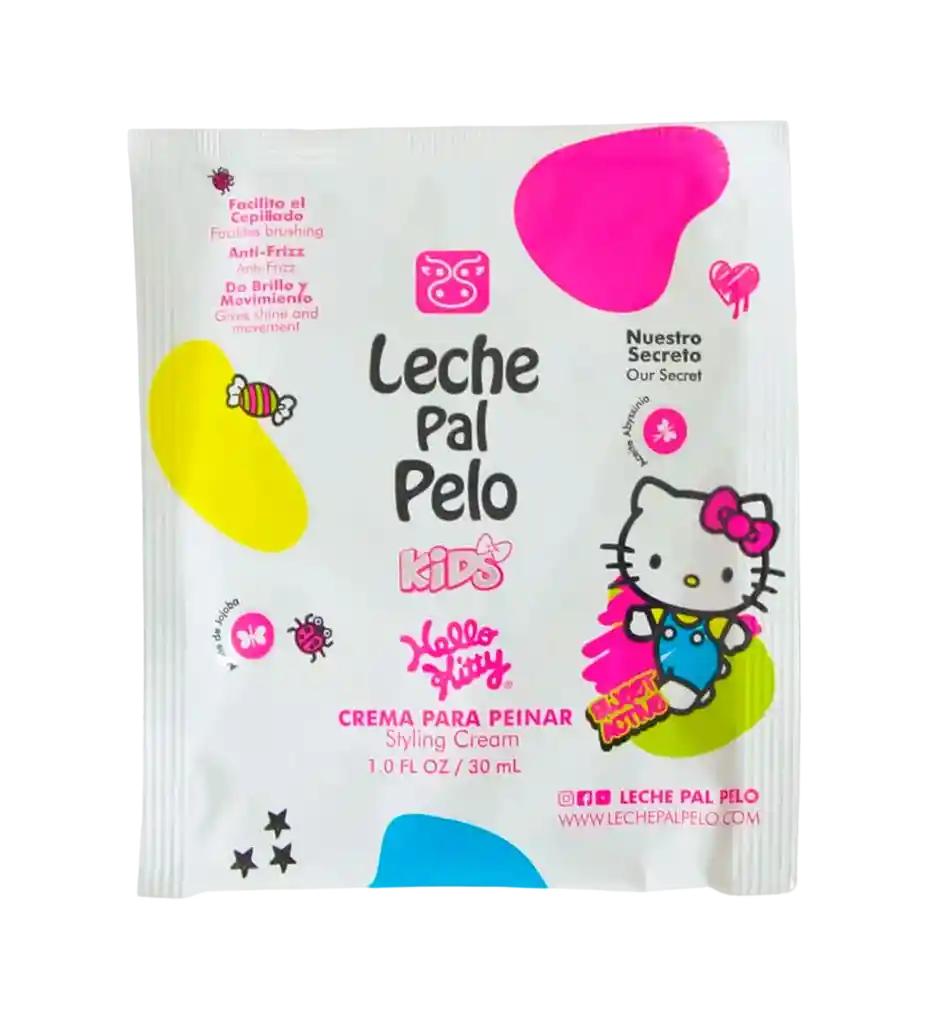 Te facilita el cepillado en cabellos secos y húmedos, desenreda mientras fortalece la fibra capilar gracias a los extractos naturales. La Crema De Peinar Hello Kitty Leche Pal Pelo en presentación de 30 ml es un producto imprescindible para facilitar el cuidado y el peinado de tu cabello. Su fórmula especialmente diseñada con extractos naturales de aceite de Abyssinia y Jojoba te brinda una serie de beneficios que te encantarán. ¿Por qué necesitas esta crema de peinar? Porque te proporcionará una solución completa para desenredar y fortalecer la fibra capilar, tanto en cabellos secos como húmedos. Los extractos naturales de aceite de Abyssinia y Jojoba actúan en sinergia para hidratar y dar brillo natural a tu cabello, al tiempo que controlan las puntas abiertas y el molesto frizz. La aplicación de la Crema De Peinar Hello Kitty es muy sencilla. Simplemente, toma pequeñas cantidades del producto y masajea suavemente el cabello, enfocándote especialmente en los medios y las puntas. Gracias a su efecto desenredante, notarás cómo se facilita el cepillado, dejando tu cabello suave y manejable. Además, esta crema no necesita enjuague, lo que hace que sea aún más práctica y conveniente para su uso en el pelo seco o húmedo. Nuestra crema de peinar está especialmente recomendada para niños mayores de 2 años. Su fórmula suave y segura cuidará del cabello de los más pequeños, dejándolo hidratado, brillante y libre de nudos. Sin embargo, es importante evitar el contacto con los ojos y, en caso de que ocurra irritación, enjuagar con abundante agua. Aunque la crema no es apta para ingerir, no tendrás que preocuparte por su aplicación, ya que su uso externo es seguro y eficaz. Para obtener resultados aún mejores, te recomendamos combinar la Crema De Peinar Hello Kitty Leche Pal Pelo con otros productos de la línea Leche Pal Pelo Kids. Al utilizar estos productos en conjunto, estarás brindando a tu cabello un cuidado integral y especializado, asegurando que luzca siempre sano y hermoso.