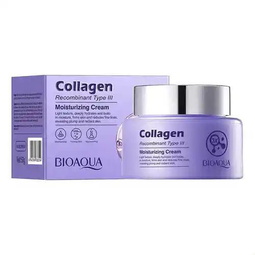 Somos LUNERA STORE BOGOTA una tienda donde encontrarás diversos productos para el cuidado diario de tu piel, maquillaje, así como accesorios para el cabello y complementos para tus rutinas de skin care. Envíos 100% seguros a nivel nacional. SI COMPRAS DIRECTAMENTE CON NOSOTROS, ¡LOS PRODUCTOS TE QUEDAN A PRECIOS MUCHOS MÁS BAJOS! Búscanos LUNERASTORECOM Crema Facial Colágeno Bioaqua 50g Crema hidratante con colágeno recombinante tipo III. Hidrata profundamente y retiene la humedad, proporciona una hidratación duradera, reafirma la piel, atenúa las líneas de expresión y rejuvenece la tez, aumenta la elasticidad de la piel, ralentiza el envejecimiento cutáneo, dejando la piel tersa, elástica, suave, translúcida y hermosa, con un aspecto juvenil y radiante. Ingredientes: agua, glicerina, aceite mineral, alcohol cetearílico, vaselina, palmitato de etilhexilo, dimeticona, triestearato de sacarosa, fenoxietanol, ácido palmítico, metilparabeno, ácido esteárico, poliacrilamida, carbómero, trietanolamina, fragancia, ciclopentasiloxano, alantoína, isoparafina C13-14, dimeticonol, laureth-7, EDTA disódico, ácido hialurónico, niacinamida, hidroxipropil tetrahidropirantriol, butilenglicol, pentilenglicol, 1,2-hexanodiol, colágeno, etilhexilglicerina, acetil hexapéptido-8. Modo de Uso: Tome una cantidad adecuada de este producto y aplíquelo uniformemente sobre la piel femenina, luego masajee suavemente hasta su absorción. NOTA: Debido a las diferentes características de la piel de cada individuo, la adaptabilidad a diferentes productos para el cuidado de la piel también varía. Antes de usar cualquier producto nuevo, se recomienda probarlo primero en la piel detrás de las orejas. Si experimenta alguna molestia o reacción cutánea anormal, deje de usarlo. Evite el contacto del producto con los ojos. Si accidentalmente entra en contacto con los ojos, enjuáguelos inmediatamente con agua. No usar en niños menores de tres años.