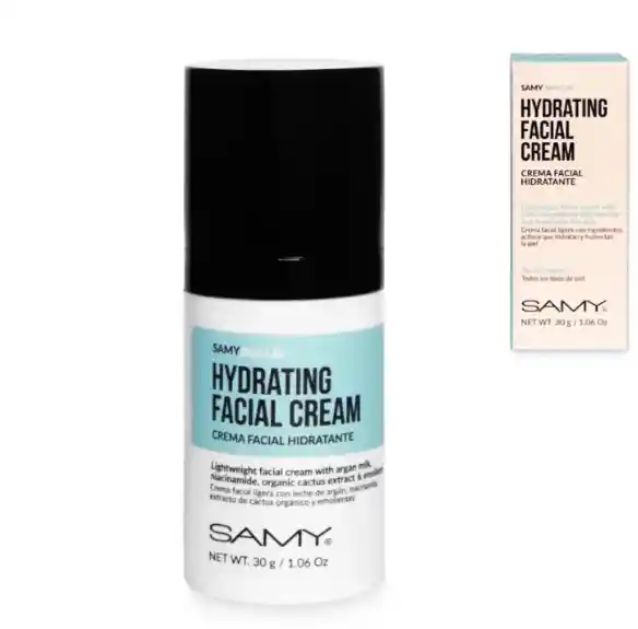 CREMA FACIAL HIDRATANTE de textura ligera con ingredientes activos que hidratan y humectan la piel. Fórmula con leche de argán, niacinamida, extracto de cáctus orgánico y emolientes.