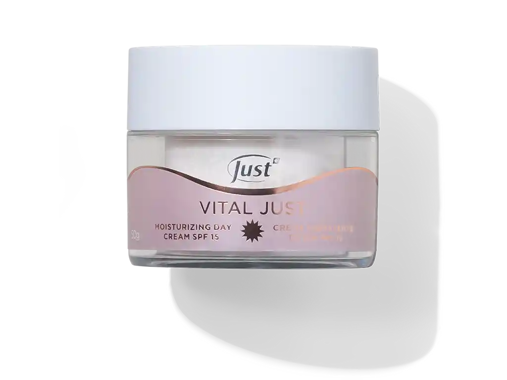 CREMA HIDRATANTE DE DIA FPS 15 VITAL JUST Protección de día para tu piel Con “Complejo de Hidratación Alpino”, extracto de campanilla de primavera y aceites botánicos. Proporciona hidratación profunda reduciendo la apariencia de las arrugas finas y la pérdida de la elasticidad. Con FPS 15 para proteger la piel de los rayos UV que provocan el envejecimiento prematuro. Luce tu piel suave como terciopelo todos los días. DERMATOLÓGICAMENTE PROBADO - NO PROBADO SOBRE ANIMALES - SIN FTALATOS - SIN PARABENOS - SIN T.A.C.C.