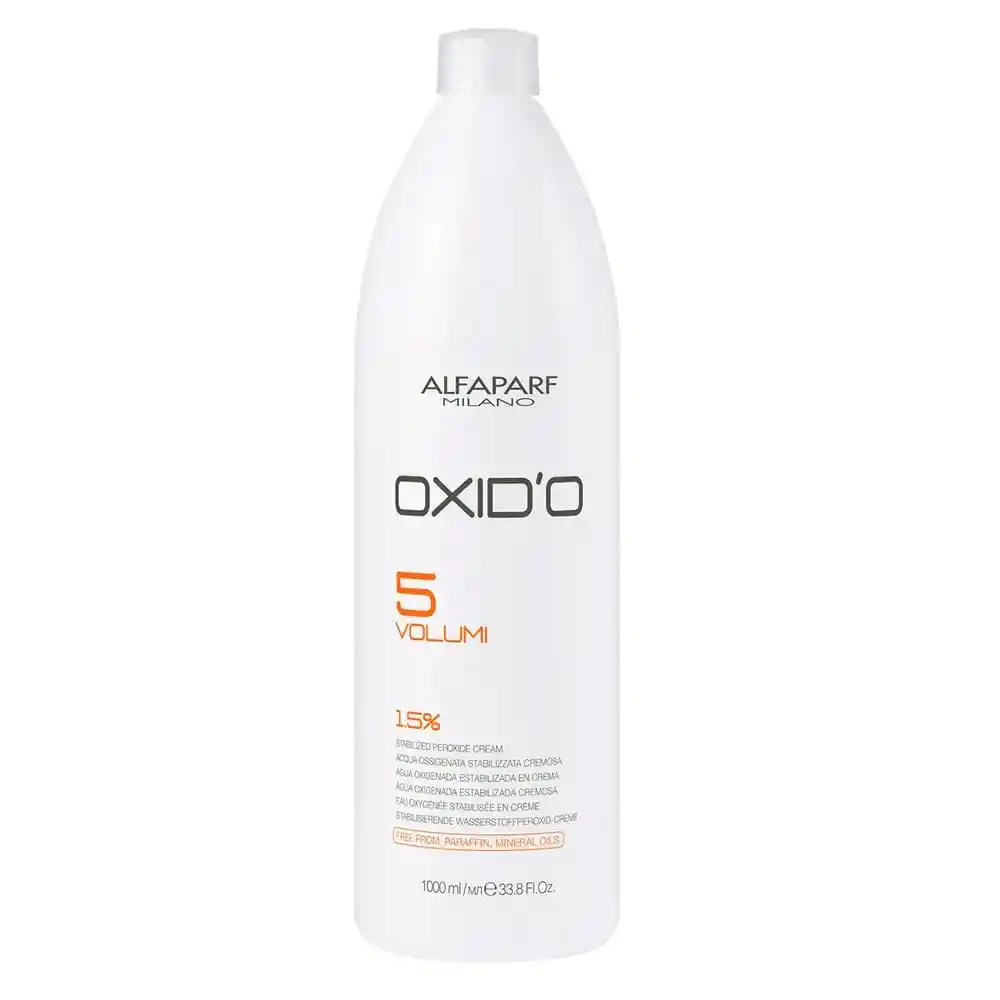 CREMA OXIGENADA ALFAPARF VOLUMEN 5 1000 ML : ideal para la coloración y la decoloración Oxido 5 volúmenes es una crema oxidante, fundamental para que actúe el color y el polvo decolorante. Puede utilizarse tanto para la coloración permanente como para la decoloración.