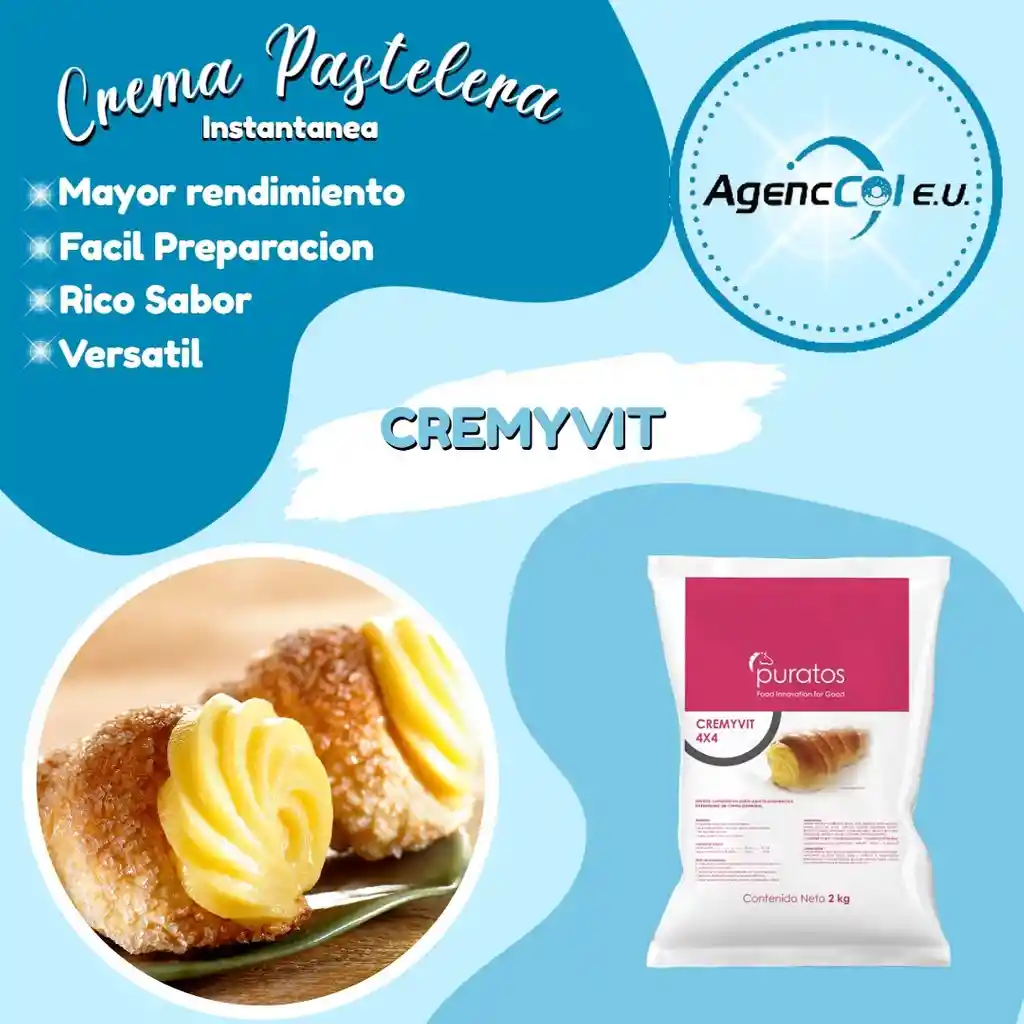 CREMA PASTELAERA INSTANTANEA CREMYVIT 4X4 No hay necesidad de sacrificar la calidad por la velocidad al hacer crema pastelera. Simplemente use Cremyvit. Cremyvit es una gama de mezclas de crema pastelera deliciosamente suaves y cremosas que se preparan en unos momentos, ¡solo agregue agua! Descripción del Producto Las mezclas de Cremyvit son fáciles de usar y rápidas de preparar. Solo agregue agua fría, bata y las cremas pasteleras están listas, con todo el sabor y textura firme que los consumidores buscan. No solo son estables al horneado y al congelamiento/descongelamiento, sino que también se pueden usar en una amplia gama de productos terminados y aplicaciones que incluyen: productos horneados como tartas, pasteles daneses y pasteles, como relleno de éclairs y viennoiserie, en rebanadas como cremeschnitte, y en gloriosa combinación con crema láctea o vegetal. *Preparación Básica* Cremyvit 4x4 .......375gr.......37.5% Agua o leche o pulpa de fruta.......1 litro .......100% Modo de Preparación: *Colocar en la batidora la leche o el agua o la pulpa de fruta *Adicionar cremyvit 4x4 *Incorporar la mezcla manualmente con ayuda del globo *Colocar a batir con el globo 3 minutos a máxima velocidad *dejar reposar hasta tener la consistencia deseada