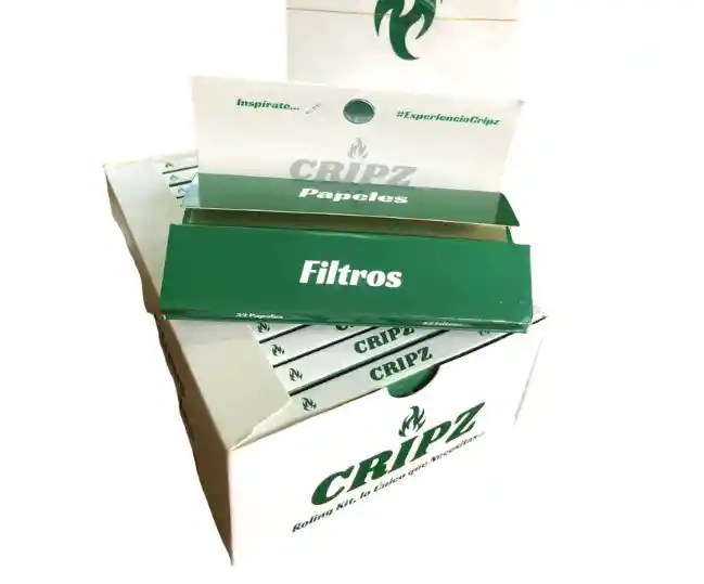 Cripz Rolling Kit , único en su categoría incluye 32 papeles orgánicos de combustión lenta, 32 filtros y un rascador, todo en un kit pequeño e ideal para llevar a cualquier lugar