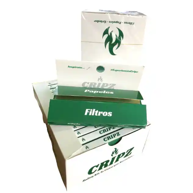 Cripz Rolling Kit , único en su categoría incluye 32 papeles orgánicos de combustión lenta, 32 filtros y un rascador, todo en un kit pequeño e ideal para llevar a cualquier lugar