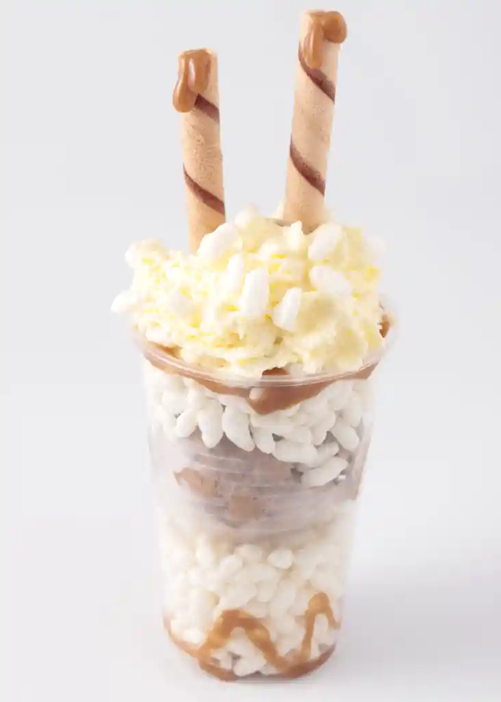 º Una porción de helado º Chantilly ° Crema de leche ° Lechera ° Crispy blanco