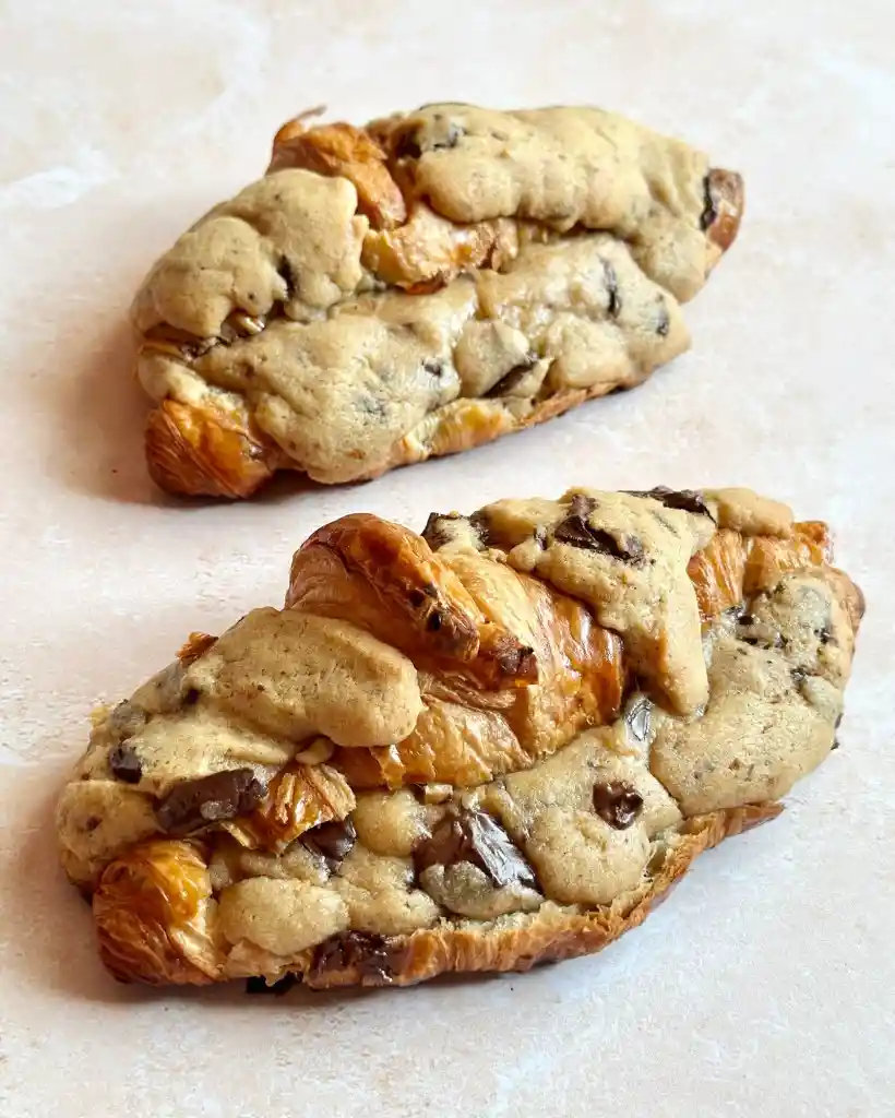 Croissant con galleta chips recién horneado