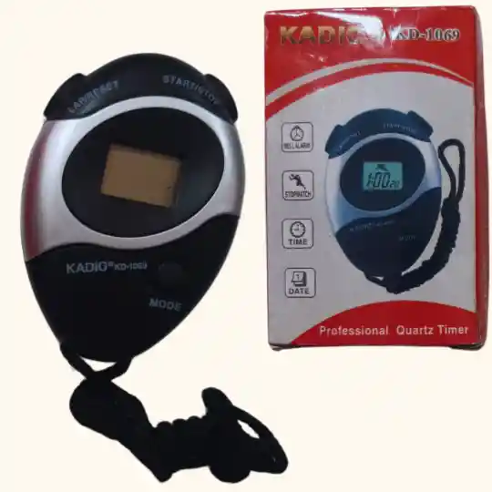 Referencia: KD1069... Rango: 9 horas, 60 minutos, 600 segundos Resolución: 1/100 segundos... Modo mediacion: Cronometro, Reloj, Alarma, Calendario... Bateria: 1 pila 1131 3v Mini. Marca: Kadio Características: Marca y alta calidad. Deportes Digital... Este cronómetro Digital es ideal para el seguimiento de los atletas. Viene con una correa de cuello tela de nylon para fácil de llevar. SPLIT/RESET y modo arranque/parada de botones para operación de la conveniencia... Tamaño:8 * 5.5 * 2.5cm.