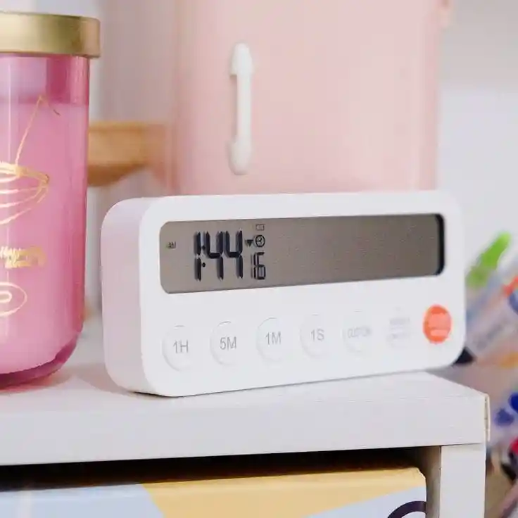 Cronómetro digital ideal para cocina, repostería, estudio o actividades que requieren control de tiempo preciso. ✔ Pantalla LCD grande y fácil de leer ✔ Función temporizador y cuenta regresiva ✔ Botones rápidos (1H / 5M / 1M / 1S) ✔ Modo personalizado ✔ Diseño moderno y compacto ✔ Fácil de usar Perfecto para controlar tiempos de cocción, horneado, entrenamientos o tareas diarias. Producto nuevo.