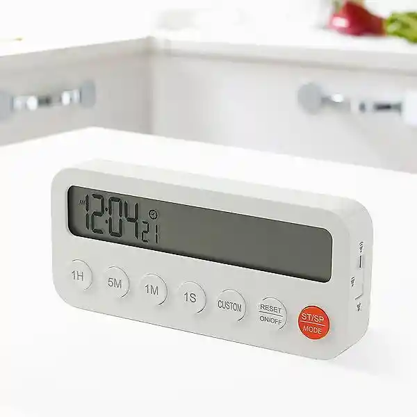 Cronómetro digital ideal para cocina, repostería, estudio o actividades que requieren control de tiempo preciso. ✔ Pantalla LCD grande y fácil de leer ✔ Función temporizador y cuenta regresiva ✔ Botones rápidos (1H / 5M / 1M / 1S) ✔ Modo personalizado ✔ Diseño moderno y compacto ✔ Fácil de usar Perfecto para controlar tiempos de cocción, horneado, entrenamientos o tareas diarias. Producto nuevo.
