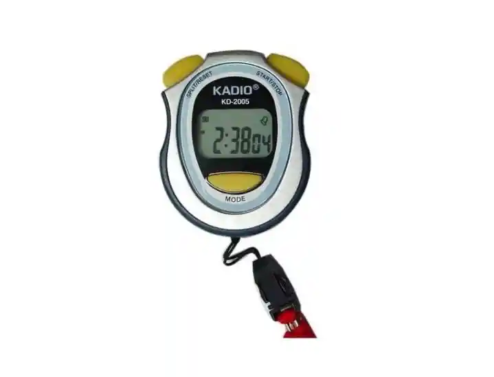 Cronómetro Kadio KD-2005 electrónico Material: Plástico. Características: -formato de hora 12/24; -precisión 0,01 s; memoria; -bip; -alarma; -Construcción especial resistente a vibraciones. El cronómetro electrónico está diseñado para medir el intervalo de tiempo, con una precisión de una fracción de segundo durante la competencia, para comparar resultados.