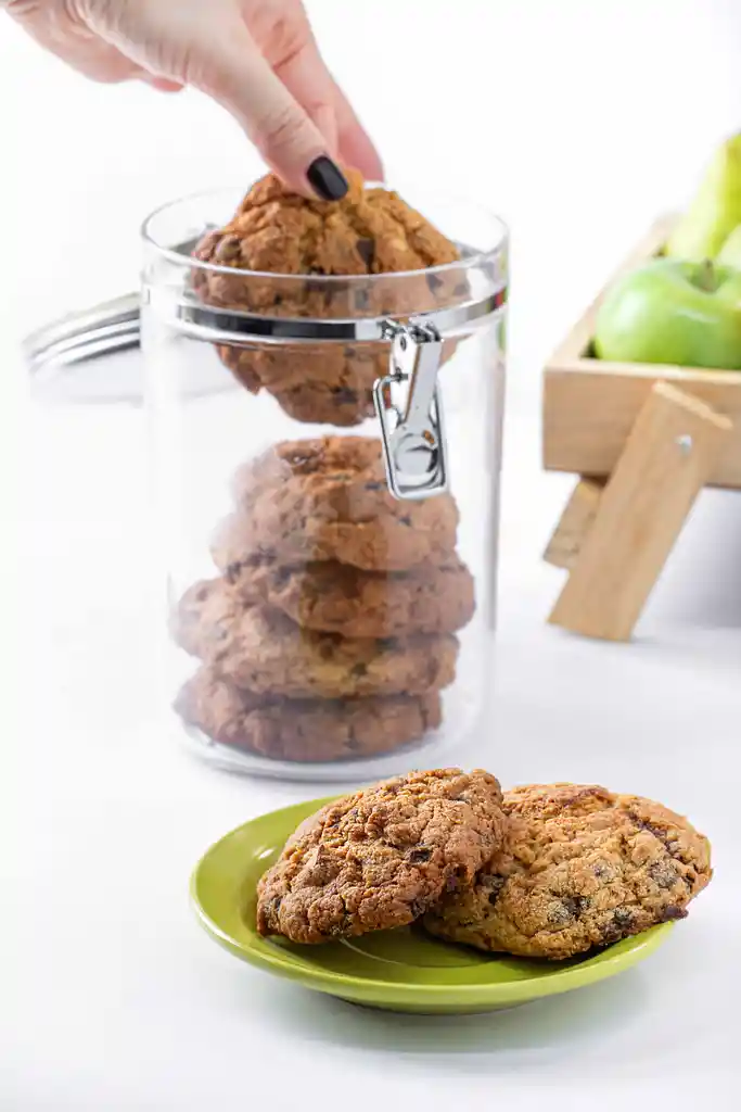 Deliciosa galleta crujiente con trozos de chocolate y nuez. Presentación individual