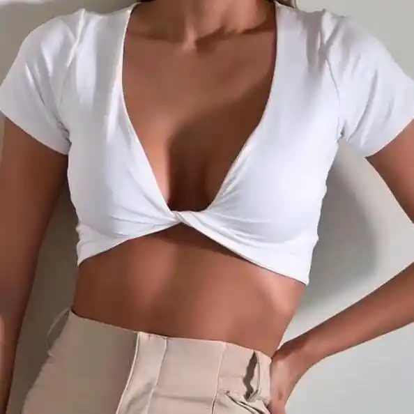 Esta blusa para mujer destaca por su diseño con nudo delantero, un detalle que acentúa la cintura y aporta un aire fresco y moderno