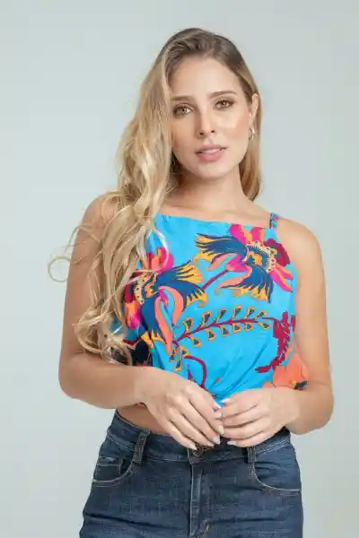 En Tejido Plano Estampado Escote Cuadrado Con Tiras Graduables Con Tensor y Argolla Detalle de Pieza Sobrepuesta en la Parte Delantera Elástico de 2 cm en Ruedo Silueta Semi Ajustada.
