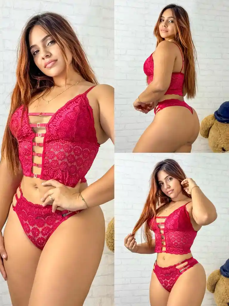 Conjunto de CROP TOP + PANTY . COLOR ROJO TALLAS UNICA (S-M-L) ELABORADO EN ENCAJE CON DETALLES EN ABDOMEN DE TIRAS CON CLIPS (no graduables) Panty con diseño de titas en Cadera ( no ajustables ) TIRAS DE HOMBRO GRADUABLES , COPA EN TRIANGULO , Ideal para uso externo o bajo tus prendas favoritas. NO CONTIENE VARLLAS EN BUSTO Y NO REALCE COMODO Y FRESCO.