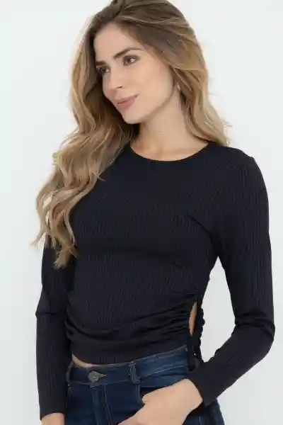 Crop Tejido Acanalado Fondo Entero Cuello Redondo Manga Larga Túneles a Los Costados Silueta Semi Ajustada.