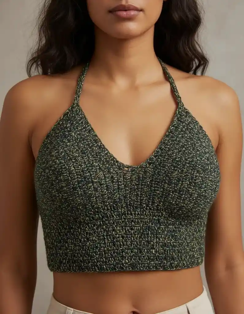 Descubre el Crop Top Tejido A Mano de VANIDADES COLLECTIONS, una prenda esencial para el guardarropa femenino. Este modelo en verde oscuro, confeccionado en hilo semialgodón, ofrece una textura suave y cómoda, ideal para lucir en diversas ocasiones. Su diseño sin mangas y cuello halter resalta la figura, brindando un toque fresco y moderno. Perfecto para un look casual o playero, este crop top se adapta a diferentes estilos y se puede combinar fácilmente con tus prendas favoritas. La talla M asegura un calce adecuado, permitiendo libertad de movimiento y confort durante todo el día. La blusa corta es una opción versátil que se puede usar tanto en salidas informales como en días de descanso. Añade este crop top a tu colección y disfruta de su elegancia y funcionalidad en cada uso.