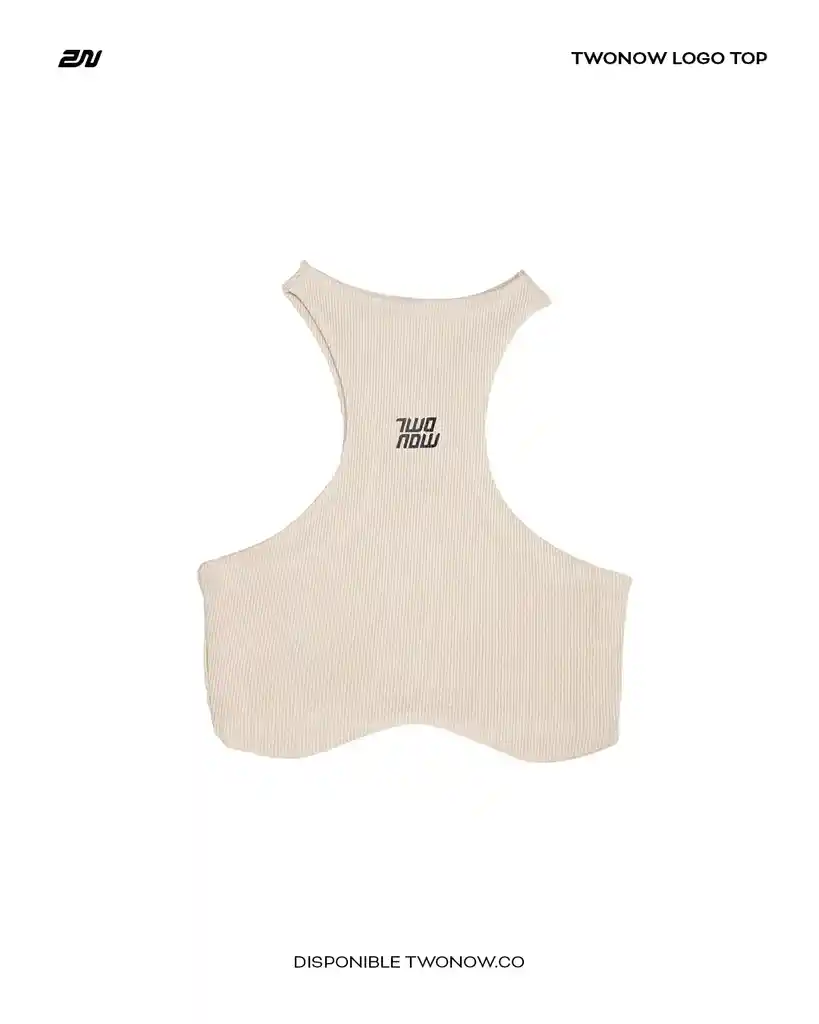 Crop top en rib, c uello redondo, c orte ajustado, lo gotipo estampado en la parte delantera, yc ortes laterales. Color articulo / Beige.