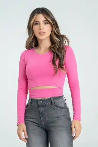 En Tejido de Punto Fondo Entero Cuello Redondo Con Sesgo Asentado en la Parte Interna Pieza Delantera Que se Sobrepone al Fajón en la Parte Delantera Manga Larga Espalda Lisa Silueta Ajustada.