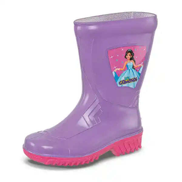Botas Ideales Para Las Salidas de Campo o en la Ciudad Durante Días Lluviosos. Con un Diseño Divertido Que a Los Más Pequeños Les va a Encantar. Bota Inyectada de Pvc Pierna Color Lila Suela Color Fucsia Adorno Lateral (Sticker Figura de Princesa).