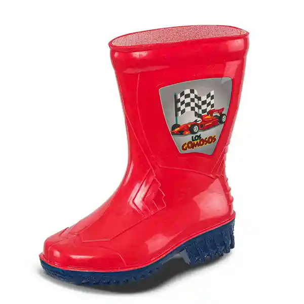 Botas Ideales Para Las Salidas de Campo o en la Ciudad Durante Días Lluviosos. Con un Diseño Divertido Que a Los Más Pequeños Les va a Encantar. Bota Inyectada de Pvc Pierna Color Rojo Suela Color Azul Oscuro Adorno Lateral (Sticker Figura de Carro)