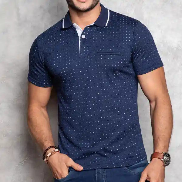 Comodidad, Frescura y Mucho Estilo en Una Prenda ¡Perfecta Para ti! Camiseta Polo Con Estampacion en Frente y Mangas Perillas Blancas. Elaborado en 65% Poliester 35% Algodón.